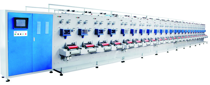 本機是采用壓縮空氣對各種長絲進行變形加工。使其產品具有仿毛、仿棉、仿麻或仿絲的外觀和手感,廣泛應用于服裝、家庭裝飾、汽車座席、傘、包、地毯、墻布等紡織行業或工業膨化、浸膠產品中。 主要配置 1、單面直立式,紗架與主機面對面; 2、芯絲輥、皮絲輥,輸出卷繞均為同步電機單獨直帶,整機同一功能輥由一臺大功率變頻器驅動; 3、槽筒移紗,摩擦輥驅動完成卷繞,卷繞尺寸Φ250*250mm,管長290mm。 4、可單錠開停; 5、有斷絲自停,定直徑停車(單錠)功能; 6. 人機界面、PLC完成工藝、參數的設定、修改、顯示、儲存。